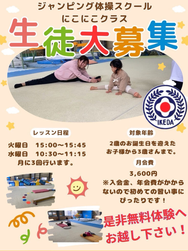 Home › お知らせ › 鈴峯教室 にこにこクラス(生徒大募集)(火)(水) 2025-02-14 鈴峯教室 にこにこクラス(生徒大募集)(火)(水) 関連記事 パンフレット 全日本ジュニア体操競技選手権大会 緑井教室 幼児クラス(随時募集中)(水)10:00~ 池田敬子先生と体操のお兄さん佐藤弘道さんで解説していただきました みんな素晴らしい笑顔です。 緑井教室 幼児クラス(随時募集中)(水)10:00~ 親子で遊ぼうオープンスペース11月16日(日)14時~15時30分